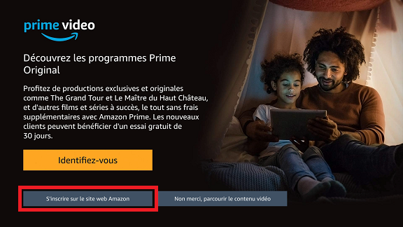 Créer un compte : cliquez sur S’inscrire sur le site web Prime depuis l’écran TV