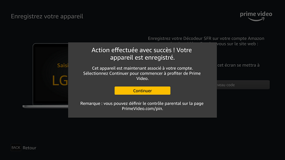 Inscription automatique de l’équipement : une fois connecté, votre décodeur est automatiquement enregistré dans votre compte Amazon
